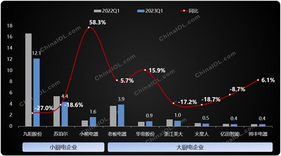 2022-2023一季度九大廚電企業利潤對比(億元)