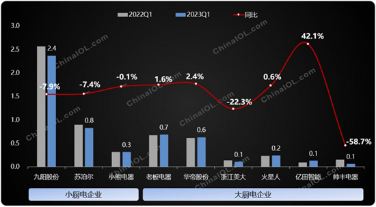 2022-2023一季度九大廚電企業營收對比(億元)