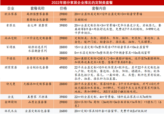 來到整家時代,頭部定企的“價格戰”也還在繼續。比如今年2月,索菲亞就推出了總價為39800元的衣櫥木衛全能整家套餐,以往索菲亞類似的套餐就要3萬元,而現在還送了11件全屋家具、UV櫥柜等配套產品。